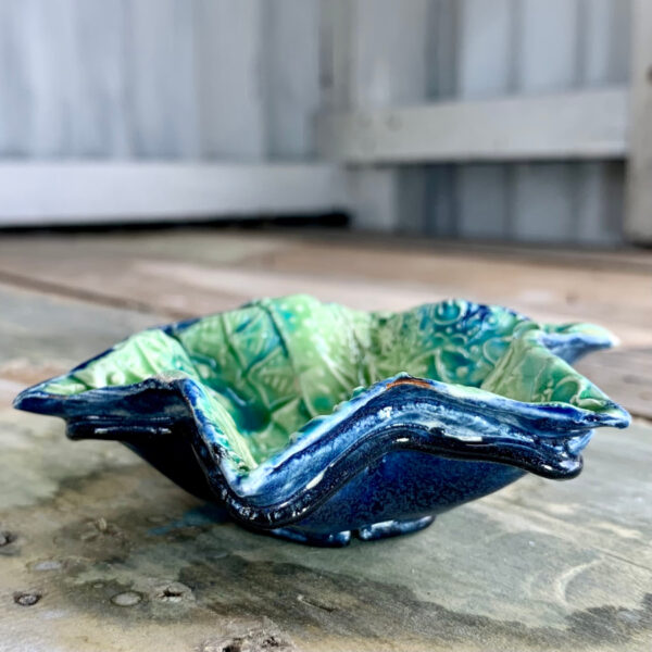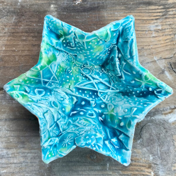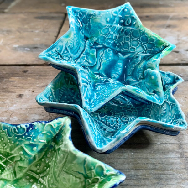 My Star Bowls are created using thin slabs of textured, earthenware dragon skin which are shaped using a press mould.