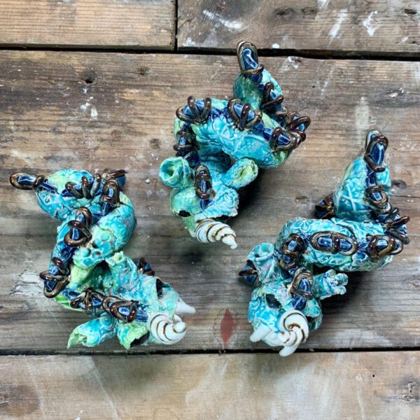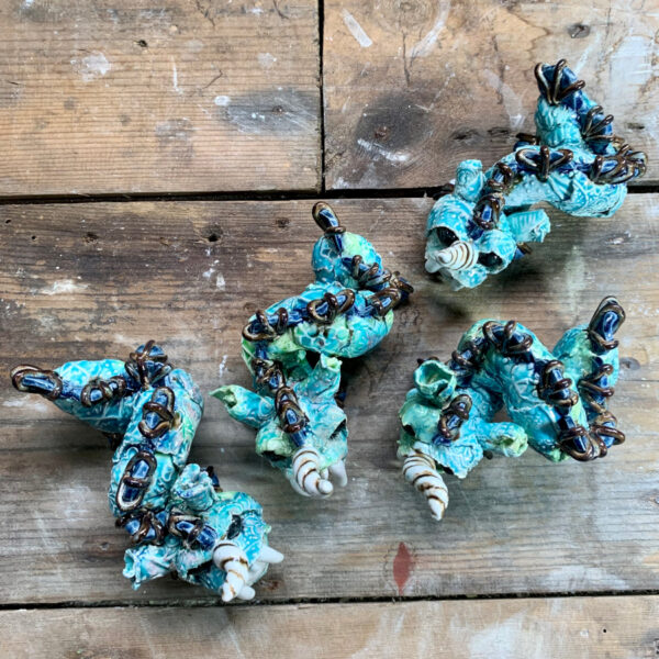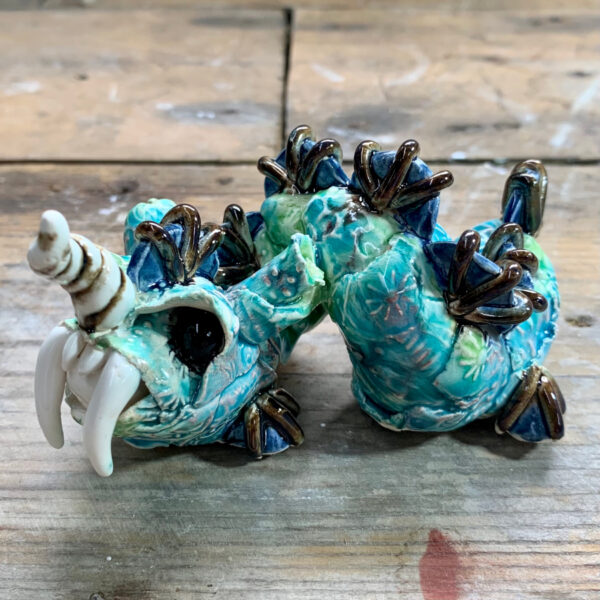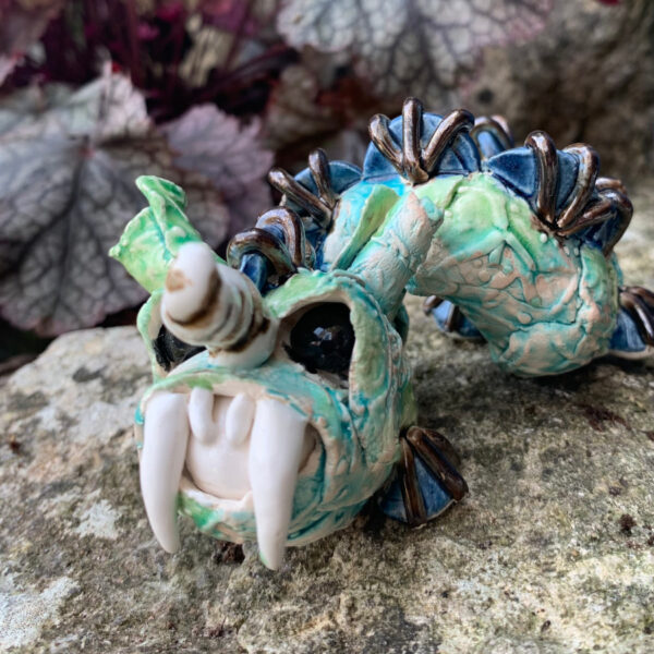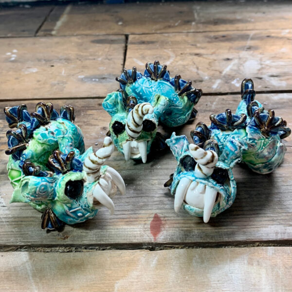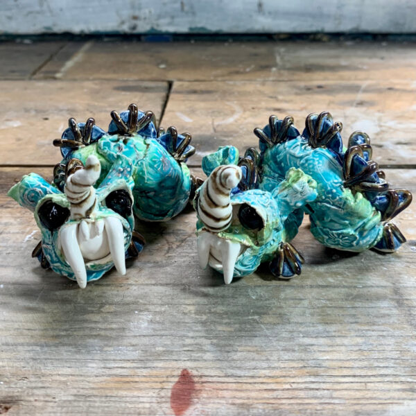 My small Water Dragon Guardians are constructed from small extruded coils of earthenware clay wrapped in textured dragon skin.
