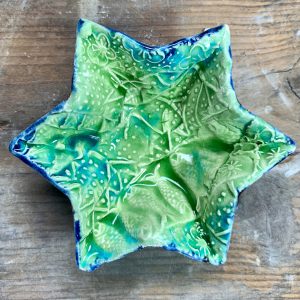 My Star Bowls are created using thin slabs of textured, earthenware dragon skin which are shaped using a press mould.