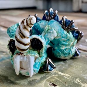 My small Water Dragon Guardians are constructed from small extruded coils of earthenware clay wrapped in textured dragon skin.